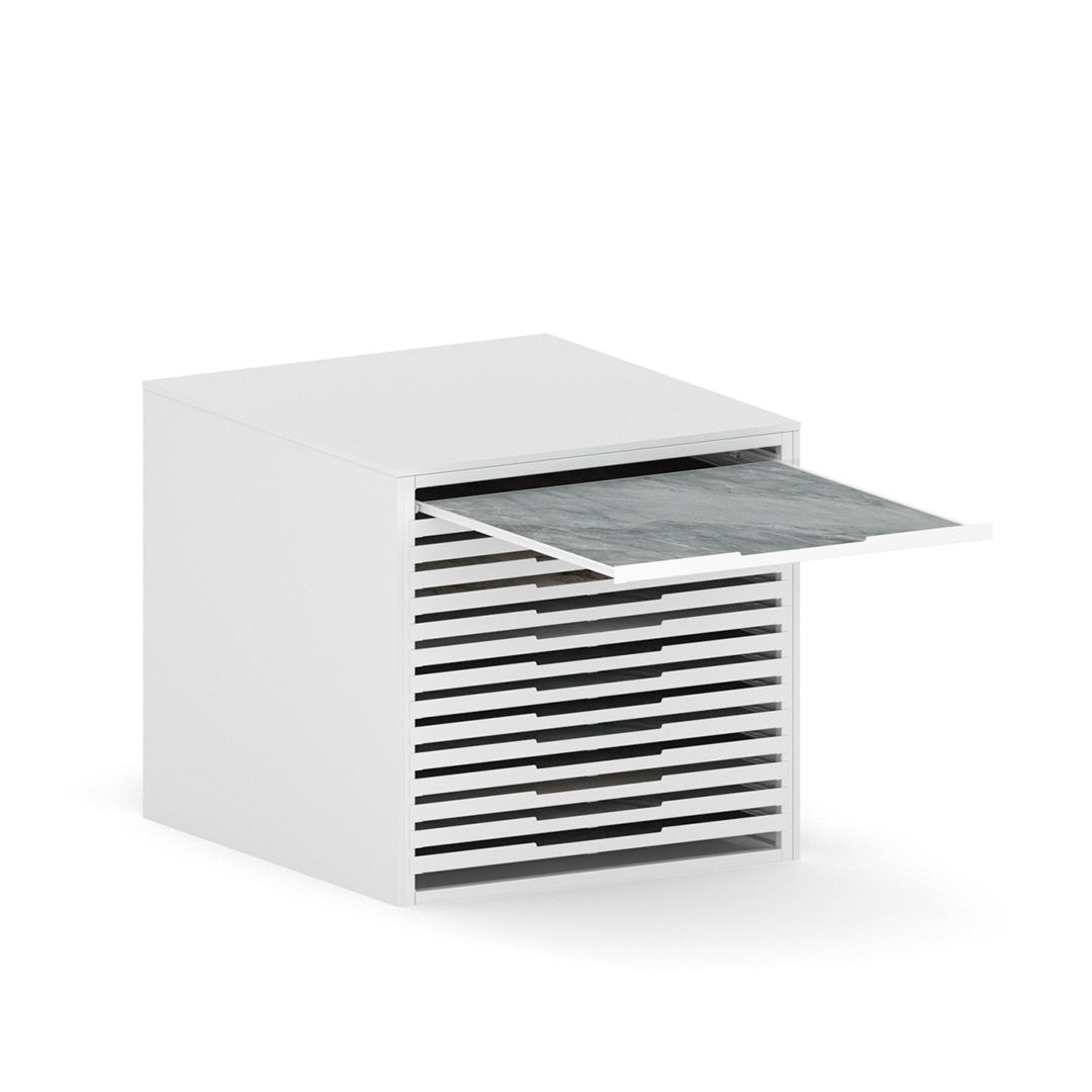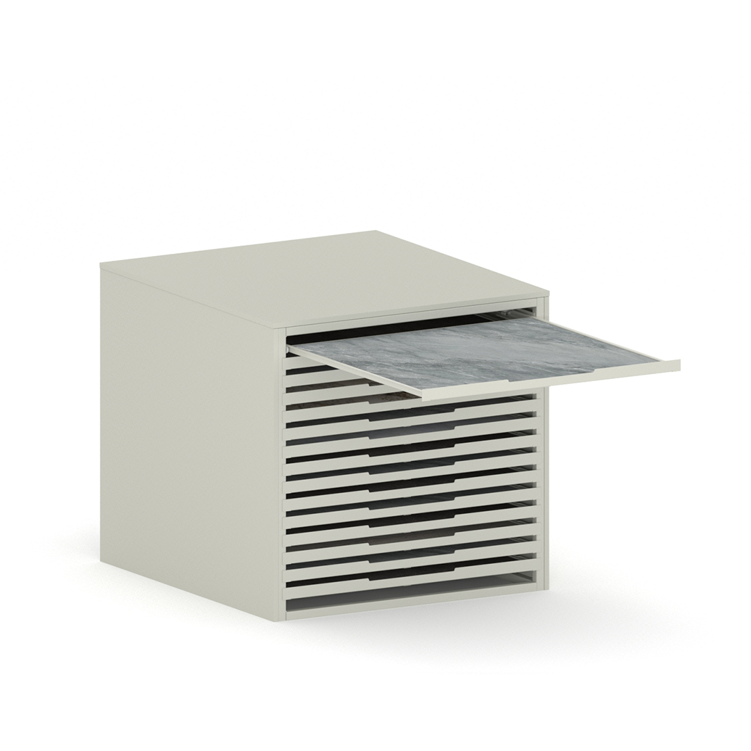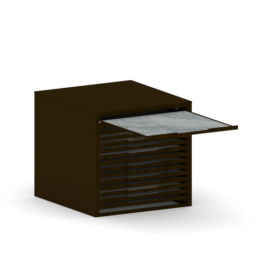 WOOD: The recycled material panel is an MDF panel or three layer chipboard the panel is made of more than 50% recycled material, cleaned and selected to be used in the inner layer of the panel. Surfaces made with virgin essences guarantee the same surface qualities and performance as traditional MDF.